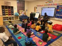 The school was celebrating American Education Week, so teachers, Ms. Pope and Ms. Childs, sponsored "Heroes Behind the Scenes" to read to the students in hopes of building stronger relationships between the school and families. The students had a blast with firefighters, law enforcement agents, community leaders and parents.Â