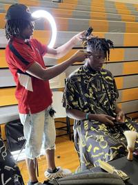 Male students were offered free haircuts by 14 volunteer barbers of local businesses from Selma and Montgomery, as well as food, face painting and games.