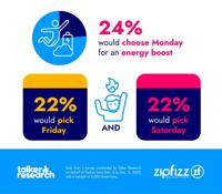 If they could control when they receive an energy boost, people were divided. Twenty-four percent would use that energy lift on a Monday (24%), while Friday (22%) and Saturday (22%) followed closely behind.
