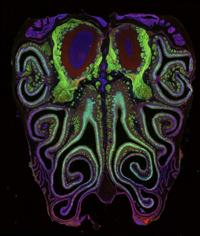 The team discovered that the neurons are organized into tight, overlapping, horizontal stripes from the top of the nose to the bottom based on the type of smell receptor they express.