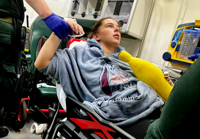 She was rushed into a room and told how "15 doctors were crowded around her trying to find out what was wrong".
