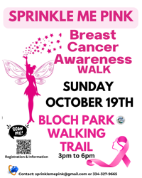 The Third Annual Breast Cancer Awareness Walk in Selma features the theme "Sprinkle Me Pink" on Sunday Oct. 19.