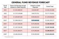 Excluding interest on state deposits, receipts to the state’s General Fund are forecast to increase slightly into 2025 before taking a moderate dip.