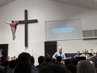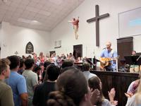 On Wednesday night, 600 people packed the sanctuary of his church, Christ the King on Highland Avenue in Selma, to worship together. Dozens of kids packed on the stage and jumped to the beat of the live band’s Christian rock songs. Football players from teams across the Black Belt packed the pews. Parents raised their hands to the sky while singing along.