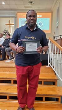After lunch, attendees, speakers, and volunteers gathered in Elkdale’s sanctuary for the award ceremony. Rev. John Braley welcomed those in attendance with Lee Tate doing devotion on behalf of Dr. Ryan Skiebe. Pastor David Nichols presented the family of Jamryon Hope with the Fallen Hero Recognition certificate, prayed and introduced the award ceremony of certificates of appreciation.