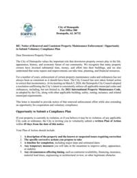 “Property owners who voluntarily come forward, submit a reasonable plan and make good-faith progress may be given additional time to complete corrective work and may be treated with greater flexibility than those who do not respond or do not cooperate,” the letter states. “The city wants to encourage self-reporting and proactive efforts to correct violations wherever possible.”