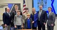 Demopolis High School's new head football coach Dustin Goodwin, second from right, with new Athletic Director Mark Heaton, left, and defensive coordinator Dylan Seabolt, far right. His wife Sara K. is from Greensboro and they have four boys.