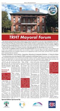 The elections being held this month in Selma will be critical for the future of our city. In this challenging context, the Truth, Racial Healing and Transformation (TRHT) Selma initiative is sponsoring a Mayoral Forum to allow citizens of Selma to understand the platforms of each candidate. TRHT is a multi-year partnership between the Black Belt Community Foundation, the Selma Center for Nonviolence, Truth and Reconciliation, and the Kellogg Foundation. Our press partner for this project is the Selma Sun.