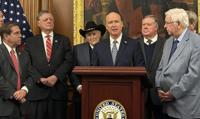 Rep. Robert Aderholt speaks at a news conference after the House passed the final appropriations package. (Alex Angle/Alabama Daily News)