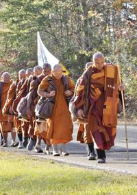 Monks associated with the Ancient Sacred Buddhist Scripture Stupas have stopped in Demopolis as part of their Walk For Peace journey and will proceed to Gallion for an overnight rest.Â