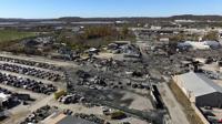 The drone footage shows the sheer scale of destruction caused by the plane that crashed shortly after take-off at 5.15 pm local time on November 4, 2025.