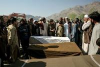 Afghans gathered around a mass grave Sunday to bury villagers killed in overnight air strikes by Pakistan, which said its military targeted militants.