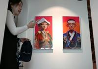 Portraits of virtual shamans resembling characters from the popular animation "KPop Demon Hunters" greet passersby at Vinaida, which means "I pray earnestly" in Korean.