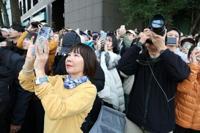 At one point, he stepped onto a platform midway up to wave down at fans and onlookers who were taking photos.