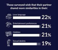 Those surveyed wish that their partner shared more similarities in their love language (22%), entertainment preferences (21%) and hobbies (21%); one in five wish their sexual desires were more aligned (18%).