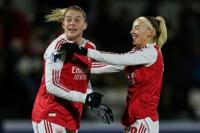 Arsenal fell behind on a bitterly cold night at Meadow Park to Scotland international Caroline Weir's goal just before half-time, but Russo rescued the Gunners with a pair of second-half headers.