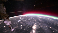 A spaceman has captured jaw-dropping views of aurora from orbit.