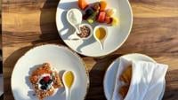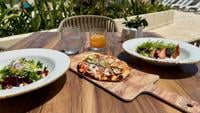 At lunch, all guests can dine in the open-air dining room or patio. Menu highlights include their flatbreads (the Toscano with burrata, chili, and honey is especially good). For starters, try their brightly flavored beetroot salad with oven-roasted beet, strawberries, yogurt, and dill oil with Eureka lemon zest, or their cucumber and mint soup. Among their cocktails, the Capro margarita is refreshing for a sunny day, featuring blanco tequila, Aperol, orange juice, lemon juice, and agave honey.
