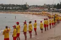 Scores of rescuers stood by the water's edge along the entire length of the beach, six days after two assailants allegedly carried out one of the deadliest mass shootings in Australia's history.