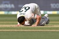 After getting through the nervous 90s, Head finally brought up his century with a four off Joe Root, taking off his helmet and kissing the turf before pumping his fists.