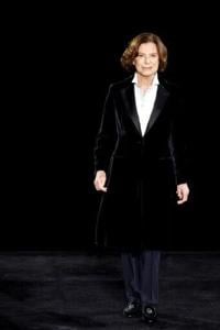 A first wardrobe that aimed to be "like classic Armani, but with a touch of originality" featured numerous fluid, satin trouser suits, sumptuous sparkling evening gowns, and blouses re-embroidered with pearls.