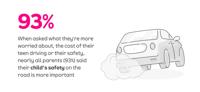 In the study, when asked what they're more worried about — the cost of their teen driving or their safety — nearly all parents (93%) said their child’s safety on the road is more important than how much it costs to equip them as a driver.