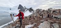 Dr. Ignacio Juarez, leader of the study, servicing one of the monitoring cameras overlooking a Chinstrap colony at Spigot Peak (ES: Nunatak Negro), Antarctica. (Ignacio Juarez Martinez via SWNS)