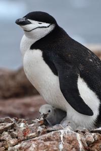Chinstrap penguin with its chick. (Ignacio Juarez Martinez via SWNS)