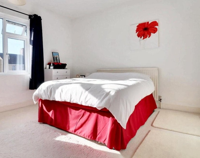 To tie in with the theme, the owners have given their kitchen worktop a lick of paint and have red and white bedding in the master bedroom.