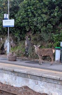 A deer has been photographed waiting at a remote train station — made famous by Harry Potter.