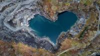 Aerial views of Elterwater Quarry, a heart-shaped lake which is located in the Lake District. //Stunning pictures show a heart-shaped lake in one of the UK’s most loved beauty spots, formed out of a slate quarry. Pretty drone images show the romantic shape of Elterwater Quarry, in Cumbria, which is known to locals as 'the heart of the Lake District'. It is believed the heart was formed after years of mining in the area, which dates back to the 19th century. Its rich blue colour is said to be caused by ancient volcanic rock - which contains a high concentration of metals - which have been dissolved into the water.