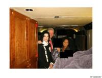 Another photo shows a youthful-looking Clinton lounging in a hot tub, part of the image blacked out.Â