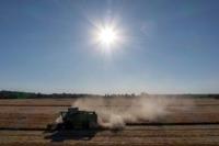 A combine harvest in Lincolnshire, eastern England, as Britain suffers its driest spring in over a century