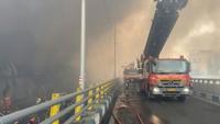 Footage showed thick plumes of black smoke billowing into the sky in the morning and blanketing the surrounding area.Â