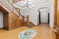 Traces of the home’s fraternity past remain throughout, including the ΛΧΑ letters displayed above the front porch and the fraternity’s emblem embedded in the entryway floor.