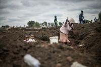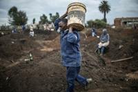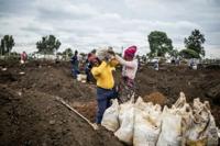 Between drags on a cigarette, Siyabonga Sidontsa stuffed soil into empty maize‑meal sacks.
