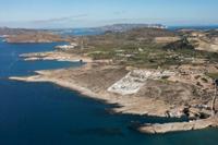 On the sloping shoreline of the Greek Aegean island of Milos, a vast construction site has left a gaping wound into the island's trademark volcanic rock.Â