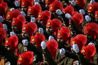 Monday's Republic Day parade featured Russian helicopters and planes, alongside dancers and motorcycle daredevils.