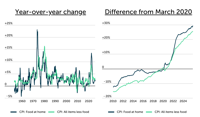 - Grocery inflation has outpaced broader inflation since the pandemic began. From March 2020 to December 2025, the Consumer Price Index (CPI) for food at home rose 29.4%, compared to 25.6% for all other items excluding food.
