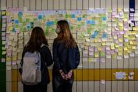 Near the wrecked towers, colourful notes bearing heartfelt messages in a subway tunnel were removed by Tuesday afternoon, but appeared on benches and lampposts nearby.