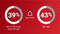 This year, 39% said they plan to file their taxes early, while another 58% plan to file just on time for April 15. This is a slight shift from last year, where 43% filed early and 54% planned to file on time.