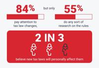A majority (84%) said they pay attention to tax law changes, but only 55% do research on what tax rules or changes will be. In fact, 41% admit they do "little to no" research on what the changes mean.