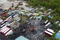 These stunning aerial images have captured "Britain's biggest bus graveyard" - filled with hundreds of single and double-deckers.