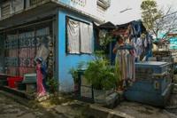 Buan and her family of four sleep atop two crypts in a mausoleum. The remaining area has been repurposed into a living room complete with a sofa, cabinet and appliances. She sells snacks and small goods from the tomb's grilled window.
