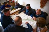 The group crowded around a table looking at highly detailed maps of future electric lines.Â