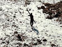 In the wake of the 2004 tsunami, this member of the Sentinelese tribe was photographed firing arrows at a helicopter. (Indian Coastguard/Survival Int via SWNS)