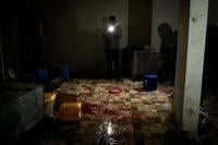 AFP pictures from the scene showed the blood-soaked floor of a building. People helped to clear up the damaged site afterwards, moving sheets of corrugated metal.