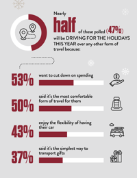 Itās a banner year for holiday road trips ā almost half of those polled (47%) will be driving for the holidays this year over any other form of travel. But with that travel can come unexpected obstacles: Nearly one in three drivers have had their holiday derailed by car troubles, leaving them stranded, needing help from a tow truck, or arriving late to celebrations.