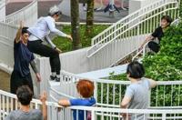 "When people hear the word parkour, they think it's only for youngsters who can jump from rooftops," said retired banker and parkour enthusiast Irene Chuah, 67. "We don't do that. We jump over benches."