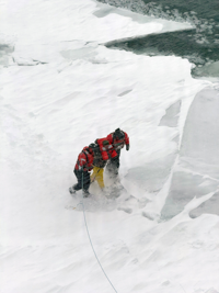 Mackinaw reported a sighting of the individual and deployed its ice rescue team. The team rescued the individual and their snowmobile, bringing them both aboard the cutter. Once aboard, the individual was administered first-level medical care, making his condition stable.